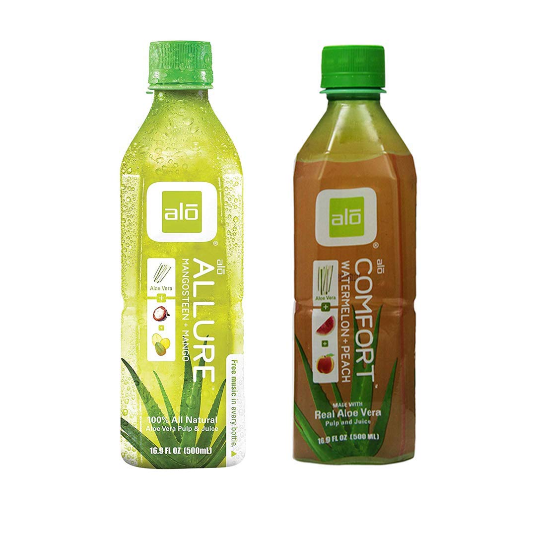 Amazon Com Alo Allure Mangosteen Mango Drink 16 9 Oz With Alo Comfort Aloe Vera Juice Drink Watermelon Plus Peach 16 9 Fl Oz Variety Pack Of 2 Grocery Gourmet Food